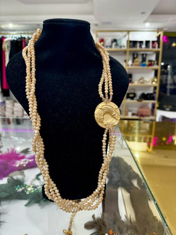La nostra esclusiva collana fusiona l’eleganza dei cristalli con la robustezza dell’ottone e dello zama. Ogni cristallo, accuratamente selezionato per la sua brillantezza, è incastonato con cura in una base di ottone e zama, creando un equilibrio perfetto tra raffinatezza e solidità. La combinazione di materiali dona alla collana un carattere unico, riflettendo la luce in modi sorprendenti. Questo gioiello è una dichiarazione di stile che cattura l’attenzione con la sua sofisticata fusione di elementi pregiati.
