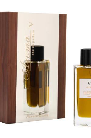 Aurora Aroma V è pieno di contrasti, combinando note che richiamano forza e modernità. La composizione presenta toni aromatici freschi di bergamotto, lavanda e verbena. Il cuore enfatizza rosa, mela, muschio di quercia, geranio e frutta secca. La base è composta da legno di sandalo pesato, Tonka inecreto ed evernyl.