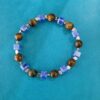“Luminosa Armonia: Bracciale Regolabile in Acciaio Oro con Pietre Blu e Viola”