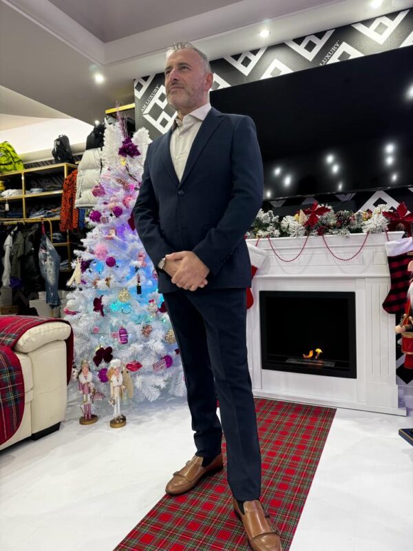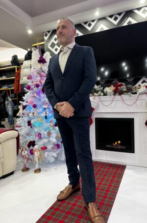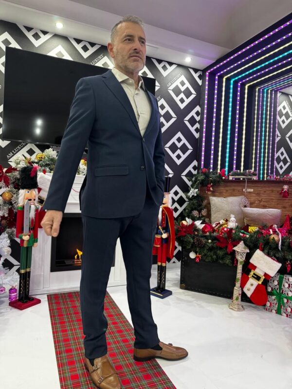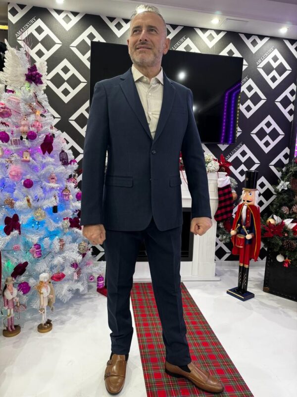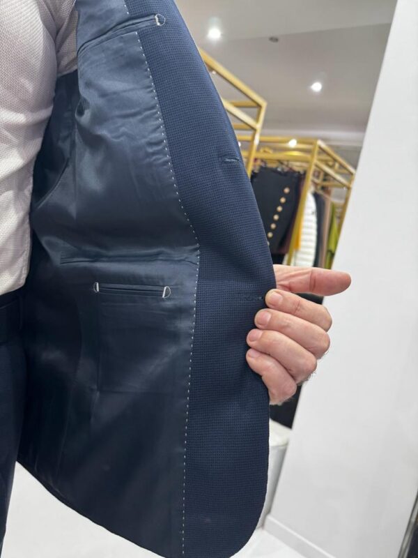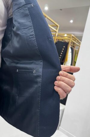 L’abito scuro con impuntatura bianca interna è un capolavoro di raffinatezza. Il colore blu o nero scuro conferisce un’eleganza classica, mentre l’impuntatura bianca interna aggiunge un dettaglio sartoriale distintivo. Questa combinazione crea un contrasto sofisticato, evidenziando il taglio e la struttura dell’abito. Perfetto per occasioni formali, questo capo è un’espressione di stile senza tempo con un tocco di artigianato raffinato.
