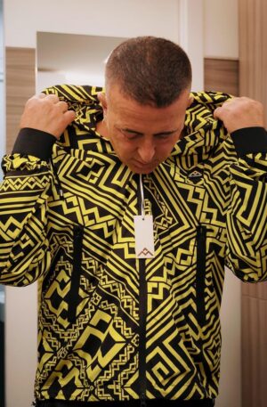 “Esclusiva Giacca Antivento da Scena: Stile Unico Indossato da Franco Ricciardi nei Concerti e da Denis Dosio con Emy Buono, Disponibile nel Nostro Store. Progettata con un innovativo nervo interno per mantenere il cappuccio in forma, questa straordinaria giacca offre protezione dal vento e uno stile distintivo. Gli elastici regolabili e il design più lungo ispirato al parka aggiungono eleganza e versatilità. Una combinazione di funzionalità e stile, rendendo questa giacca una scelta straordinaria per un look distintivo e all’avanguardia.”