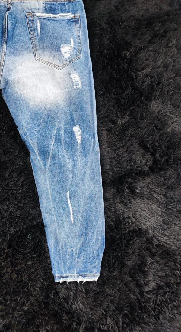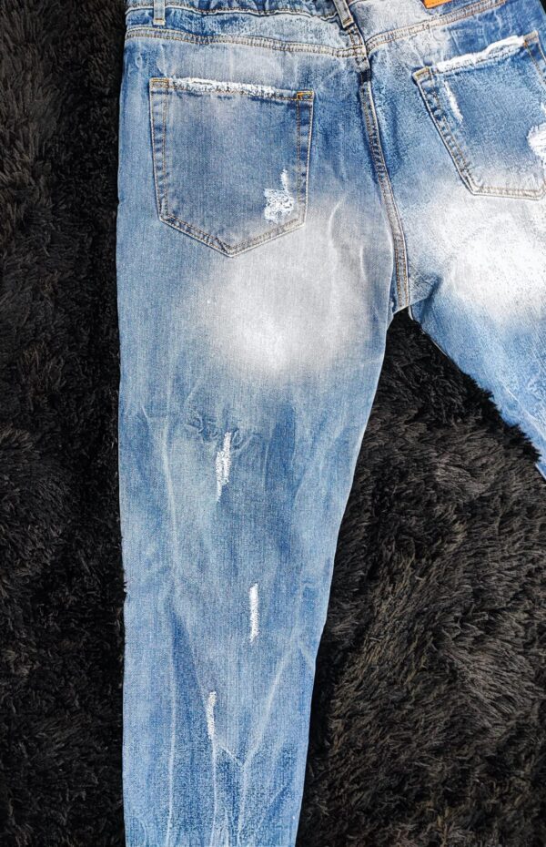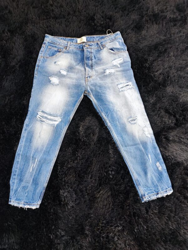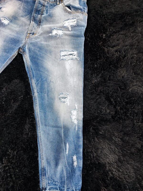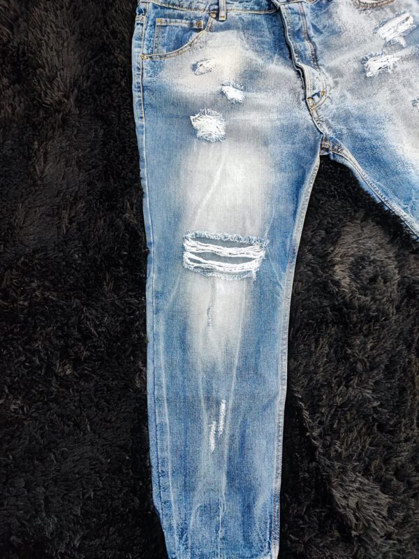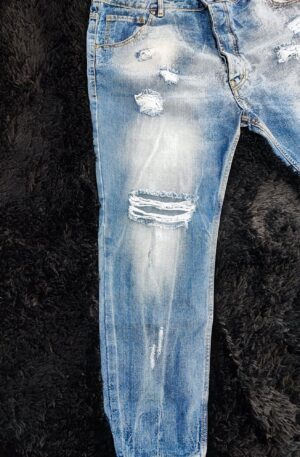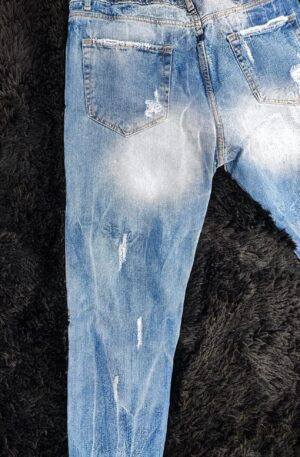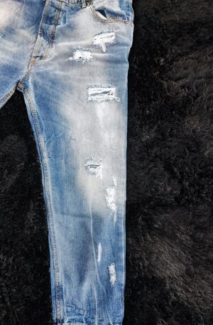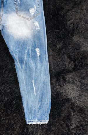 Questi jeans strappati sono l’espressione di uno stile ribelle e alla moda. Caratterizzati da strappi strategici lungo le gambe, aggiungono un tocco di grinta al tuo look. Realizzati con denim resistente, mantengono un aspetto fresco e casual. Perfetti per chi cerca un look trendy e informale, questi jeans strappati sono un’opzione audace che trasmette un’aura di giovinezza e individualità.”